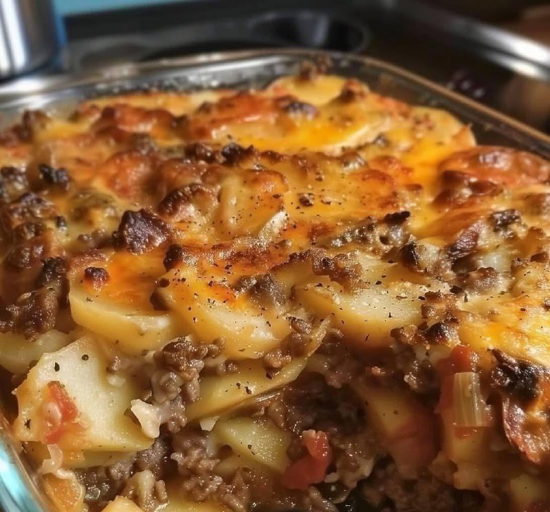 Cheesy Ground Beef & Layered Potato Bake