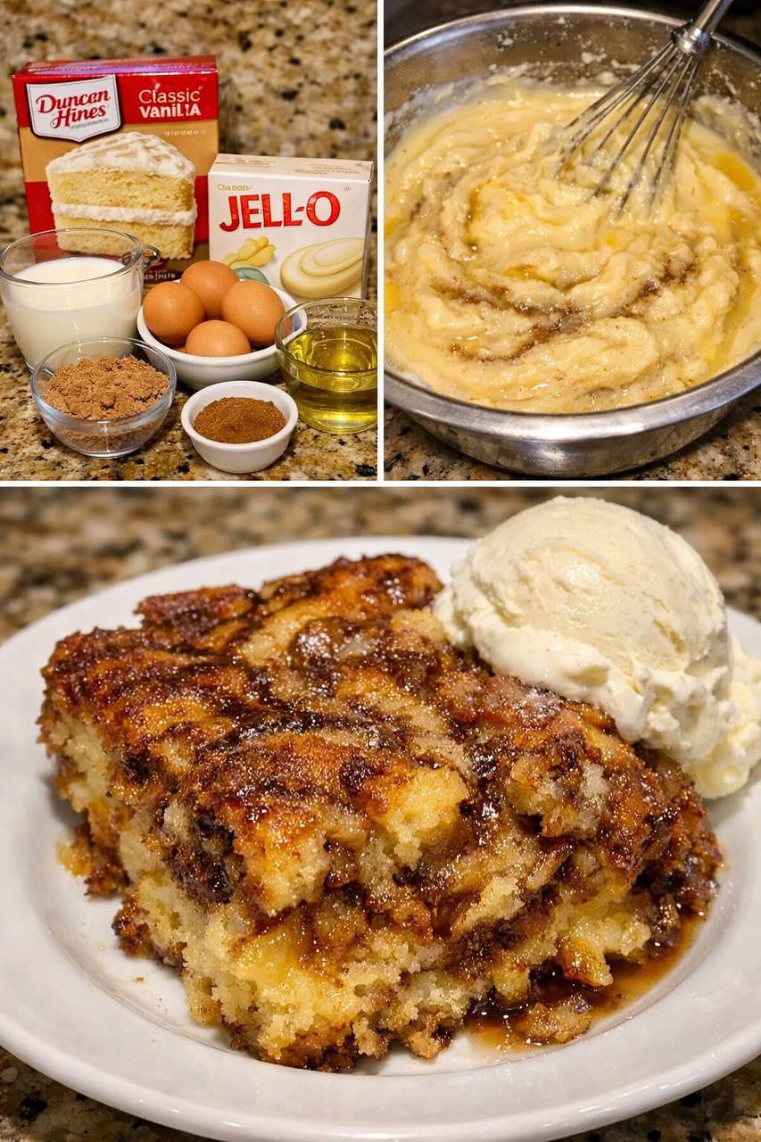 This recipe is wonderfully adaptable to different flavors and preferences. For a different twist, try using a butter pecan or cheesecake instant pudding mix instead of vanilla to subtly alter the cake’s base flavor. If you’re a fan of nuts, sprinkle 1/2 cup of finely chopped pecans or walnuts along with the cinnamon swirl mixture for added crunch and nutty flavor. Instead of vanilla ice cream, consider serving with a dollop of freshly whipped cream, a dusting of powdered sugar, or a drizzle of warm caramel sauce for extra indulgence. For a truly decadent option, prepare a simple cream cheese glaze by whisking together 4 ounces softened cream cheese, 1/2 cup powdered sugar, 1 tablespoon milk, and 1/2 teaspoon vanilla extract, then drizzle it over the cooled cake.