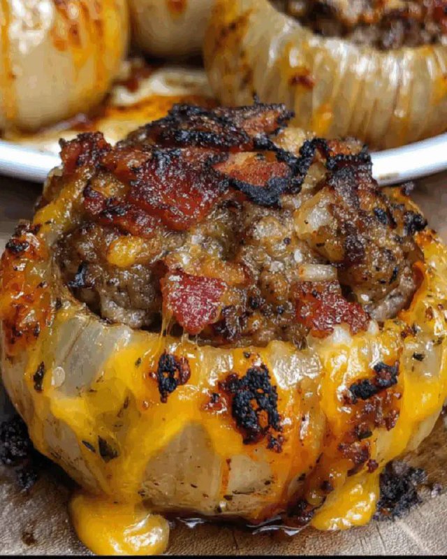 Prepare your taste buds for an explosion of flavor with these incredible Firecracker Bacon Cheddar Stuffed Onion Bombs! Imagine tender, sweet onions, generously hollowed out and filled with a savory, perfectly seasoned ground meat mixture, bursting with gooey melted cheddar cheese, and then lovingly wrapped in crispy, smoky bacon. These aren’t just an appetizer; they’re a showstopper, a conversation starter, and quite possibly the most addictive bite you’ll encounter all year. Whether you’re hosting a backyard BBQ, looking for the ultimate game day snack, or simply craving a hearty and satisfying side dish, these “bombs” are guaranteed to ignite a culinary celebration.