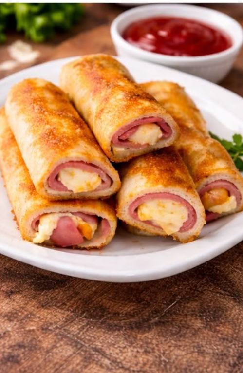 8. Serve: Once cooked, transfer the ham and cheese rolls to a plate lined with paper towels to drain any excess oil. Garnish with chopped fresh parsley, if desired. Serve immediately with your favorite dipping sauce, such as ketchup, honey mustard, or marinara sauce.