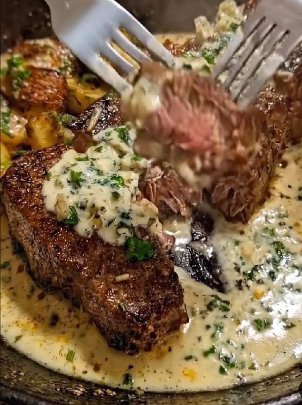 Imagine a perfectly seared steak, its exterior boasting a deep, caramelized crust, while the inside remains unbelievably tender and blushing pink. Now, picture that succulent steak draped in a rich, velvety garlic cream sauce, infused with aromatic herbs, and accompanied by crispy, golden smashed potatoes. This isn’t a fantasy from a high-end restaurant; this is the culinary masterpiece you’re about to create in your own kitchen. Our Juicy Steak with Creamy Garlic Sauce recipe is designed to bring that gourmet dining experience right to your table, proving that restaurant-quality doesn’t have to mean restaurant prices or complicated techniques.