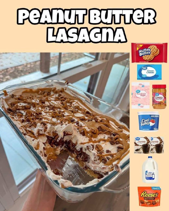 What makes Peanut Butter Lasagna so special? It’s the perfect harmony of textures and flavors. Imagine a buttery, crumbly Nutter Butter crust providing the perfect foundation for a thick, velvety layer of sweetened cream cheese and peanut butter. This is then topped with a smooth, cool chocolate pudding layer, crowned with fluffy whipped topping, and finished with a generous drizzle of melted peanut butter and a scattering of Reese’s cups. It’s a dessert that not only looks impressive with its distinct layers but delivers an explosion of flavor with every single bite. Perfect for any occasion, from casual family dinners to festive gatherings, this dessert is a guaranteed crowd-pleaser.