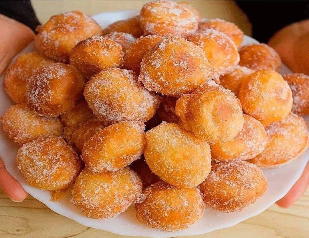 11. Transfer the sugar-coated mini doughnuts to a clean serving platter. Repeat the frying and coating process with the remaining dough, ensuring the oil temperature is maintained at 350°F (175°C) between batches. Adjust heat as needed.