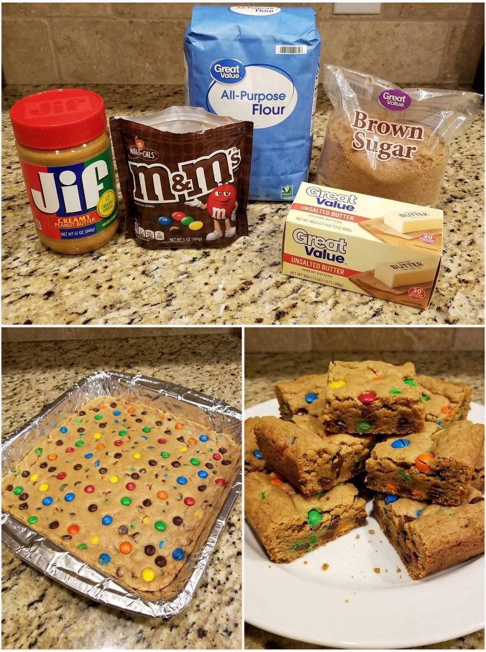 - Serve and enjoy these thick and chewy peanut butter M&M bars!