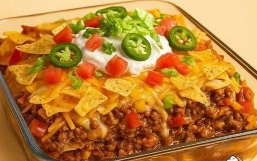 This isn’t just another casserole; it’s a revelation. Imagine perfectly seasoned ground beef, rich and savory, nestled beneath a blanket of melty, gooey cheese, all punctuated by the satisfying crunch of tortilla chips. Then, it’s crowned with a vibrant explosion of fresh, cool toppings like crisp lettuce, juicy tomatoes, zesty jalapeños, and creamy sour cream. It’s a symphony of textures and tastes in every forkful, bringing that beloved “walking taco” experience – where you eat tacos right out of a bag of chips – to a more substantial, comforting, and oven-baked format. It’s hearty, incredibly flavorful, and designed for maximum enjoyment with minimal fuss.